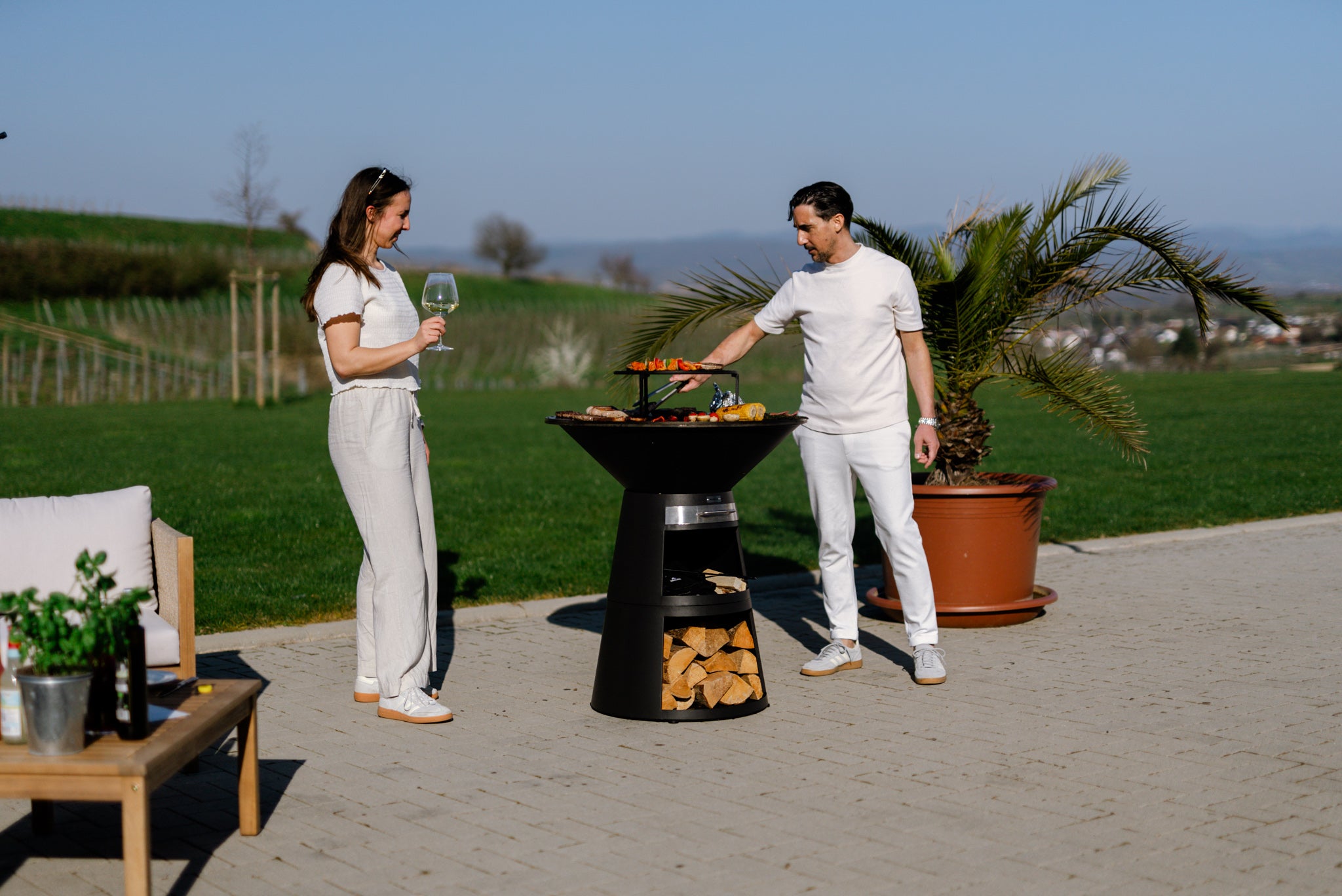 Le barbecue est vraiment amusant ! Après le repas, il suffit de pousser tous les restés dans le feu et il est propre. L'élimination de la cendre est également super facile – et d'un point de vue esthétique, cet élément est de toute façon un point fort dans le jardin.