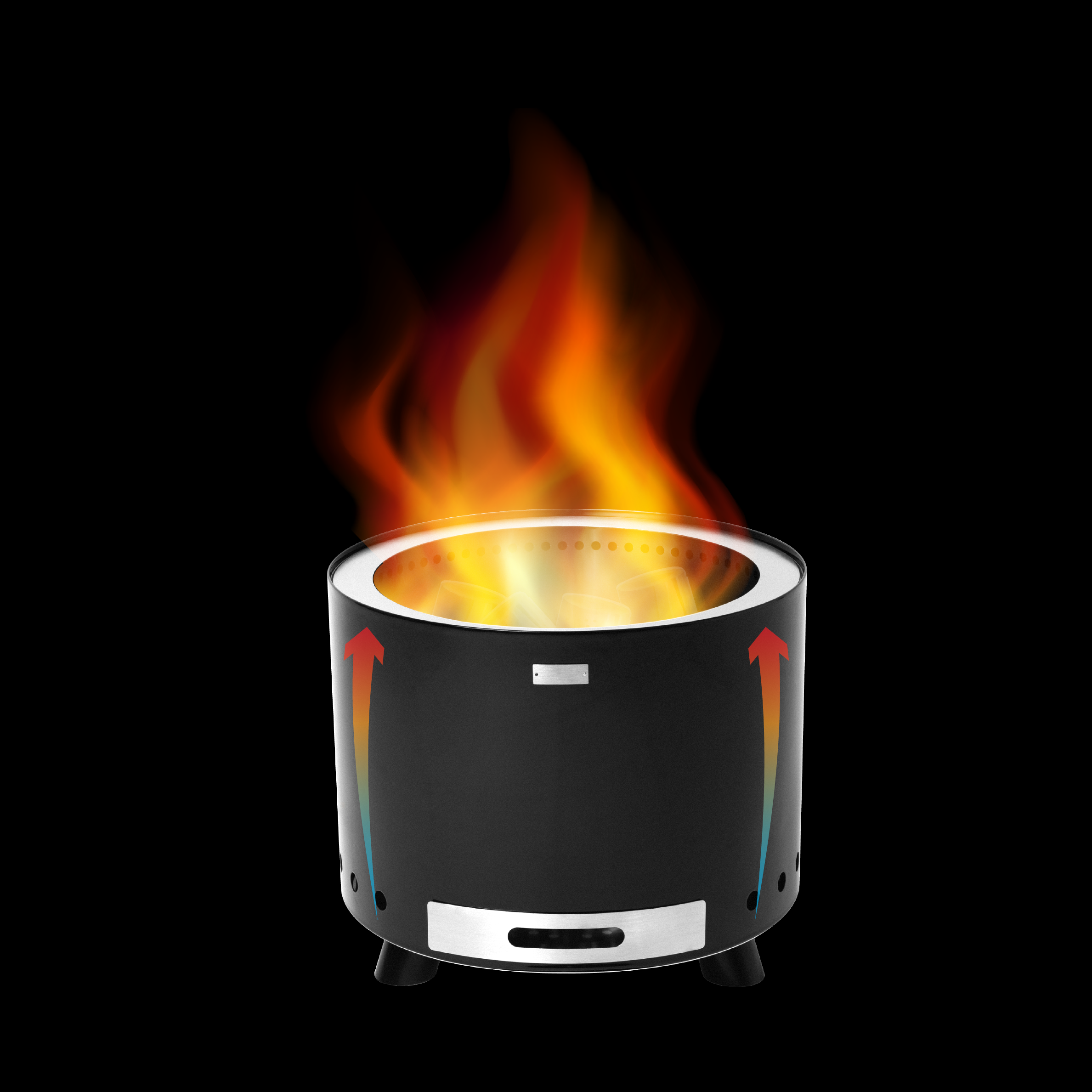 Nos bols à feu sont pratiquement sans fumée, ce qui signifie qu'ils produisent beaucoup moins de fumée que les foyers conventionnels. La technologie à double paroi et la combustion secondaire garantissent que même les plus petites particules de bois sont brûlées efficacement, minimisant ainsi le développement de fumée.