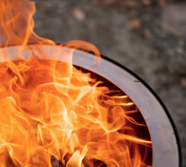 Nos bols à feu sont pratiquement sans fumée, ce qui signifie qu'ils produisent beaucoup moins de fumée que les foyers conventionnels. La technologie à double paroi et la combustion secondaire garantissent que même les plus petites particules de bois sont brûlées efficacement, minimisant ainsi le développement de fumée.