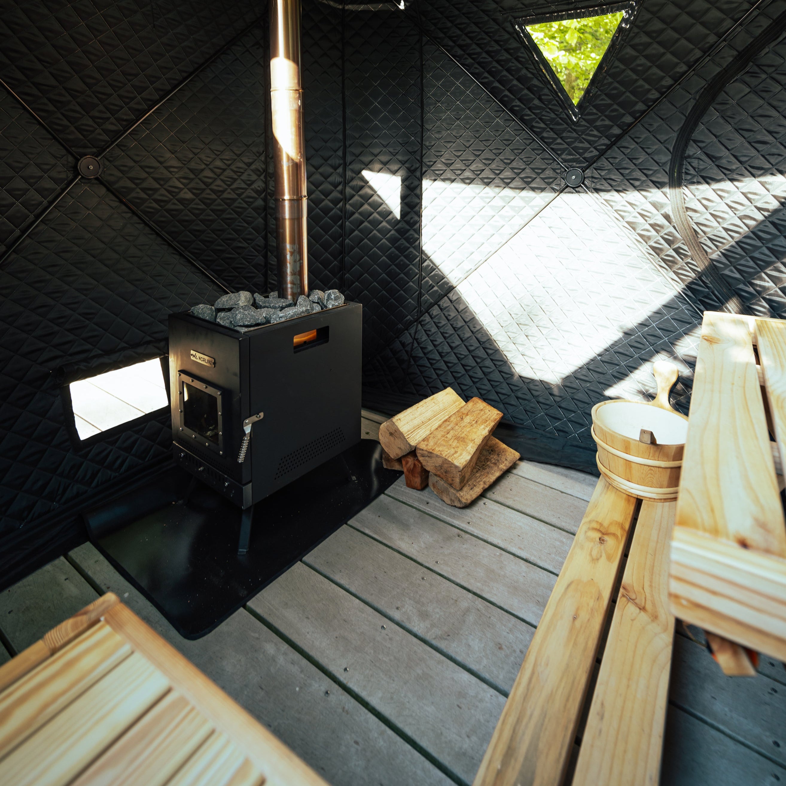 Le poêle est conçu pour la tente sauna Isen afin d’offrir des conditions optimales pour la séance de sauna.