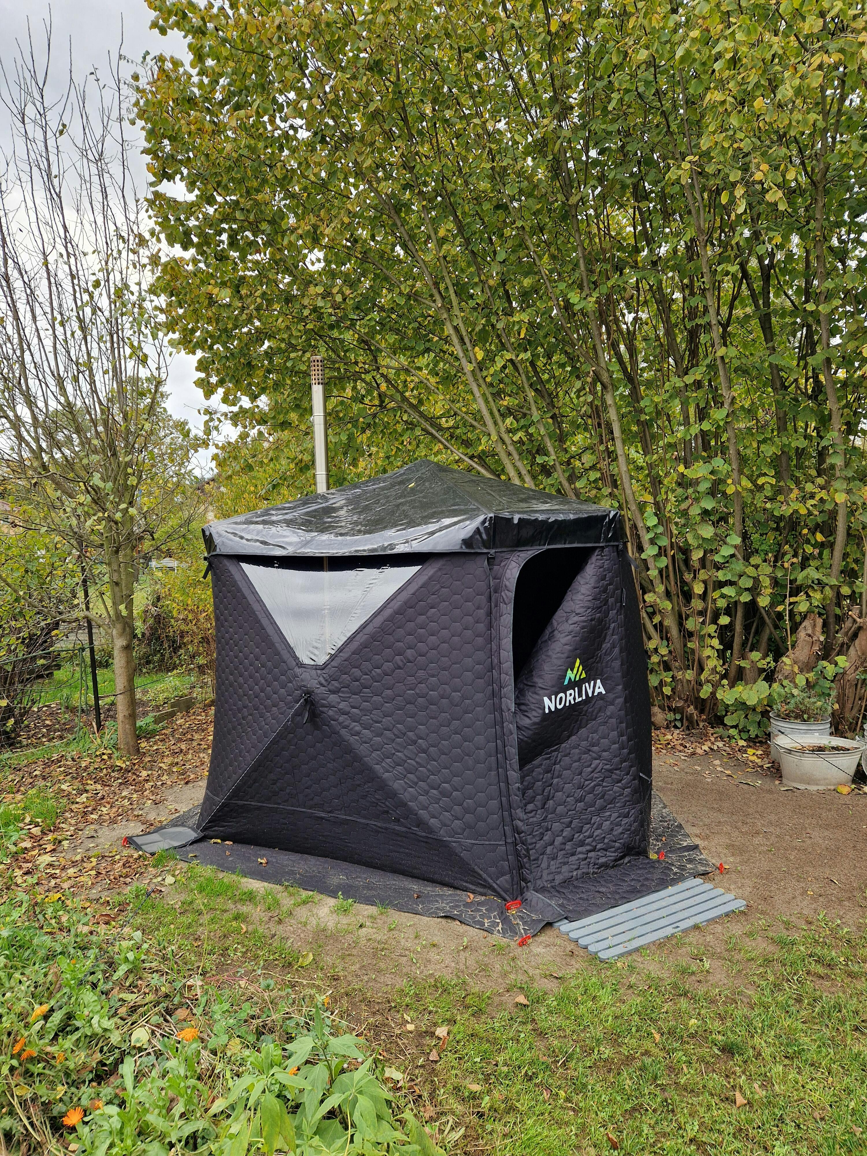 Moin, das Saunazelt Dalen ist genau richtig, um im ungemütlichen November die Abende ausklingen zu lassen. IIh habe das Saunazelt als Set mit dem Ofen und Zubehör gekauft. Bisher habe iich es noch nicht in 5 Minuten aufgebaut, es hat 8 Minuten gedauert bis zum Ansheizen des Ofens. ;-) Aber ich habe das Zelt ja auch erst einen Monat. So, jetzt habe ich keine Zeit mehr, die 90 Grad Celsius im Zeltsind erreicht.