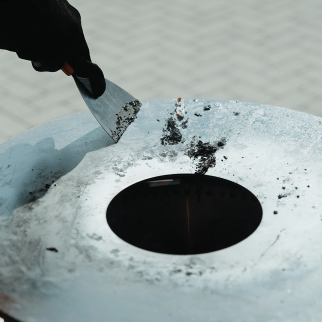 Essensreste einfach ins Feuer abschaben, Asche nach dem Abkühlen von oben entfernen und Rückstände bequem über die Ascheschublade entsorgen – schnell und sauber.
